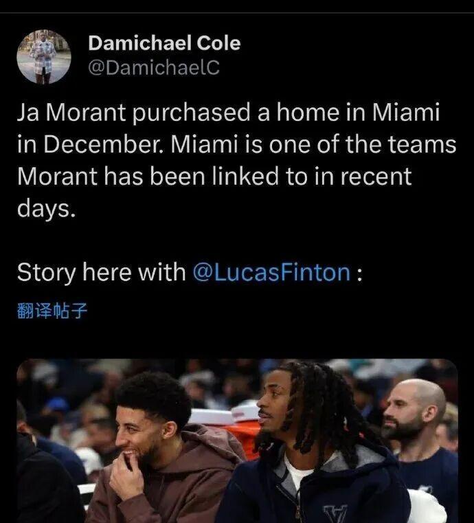 值得一提的是,《孟菲斯商业呼声报》表示,迈阿密-戴德县房产记录查询到莫兰特已在迈阿密购置了一处房产,价值320万美元,此次购买发生在灰熊考虑交易前者的消息得到确认两周多之前。